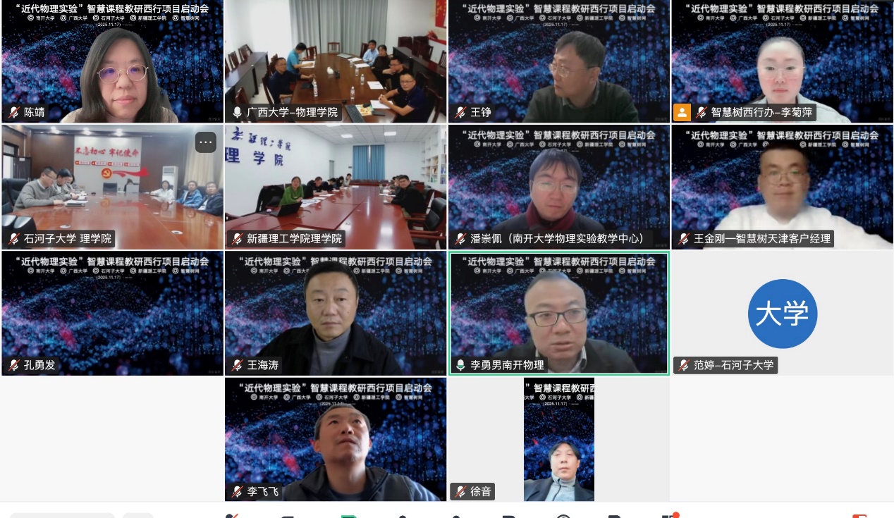 11月17日,“近代物理实验”智慧课程教研西行项目启动会以线上线下相结合的方式顺利举行。该项目由南开大学、广西大学、石河子大学、新疆理工麻豆a片